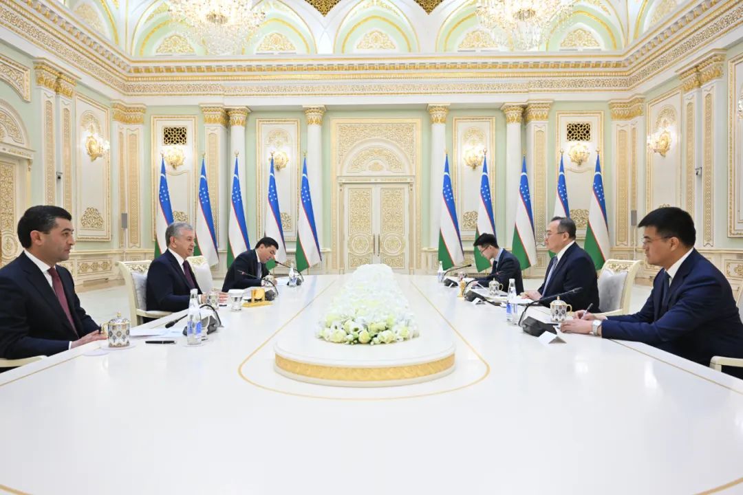 4月1日,乌兹别克斯坦总统米尔济约耶夫在塔什干会见中共中央对外联络部部长刘建超。