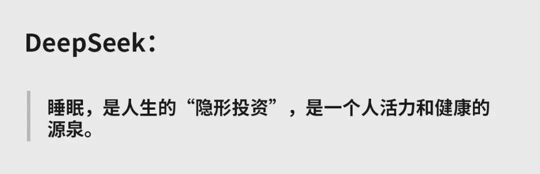 这恰恰印证了DeepSeek的一个结论:睡眠,是人生的“隐形投资”,是一个人活力和健康的源泉。