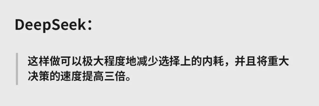 DeepSeek说:这样做可以极大程度地减少选择上的内耗,并且将重大决策的速度提高三倍。