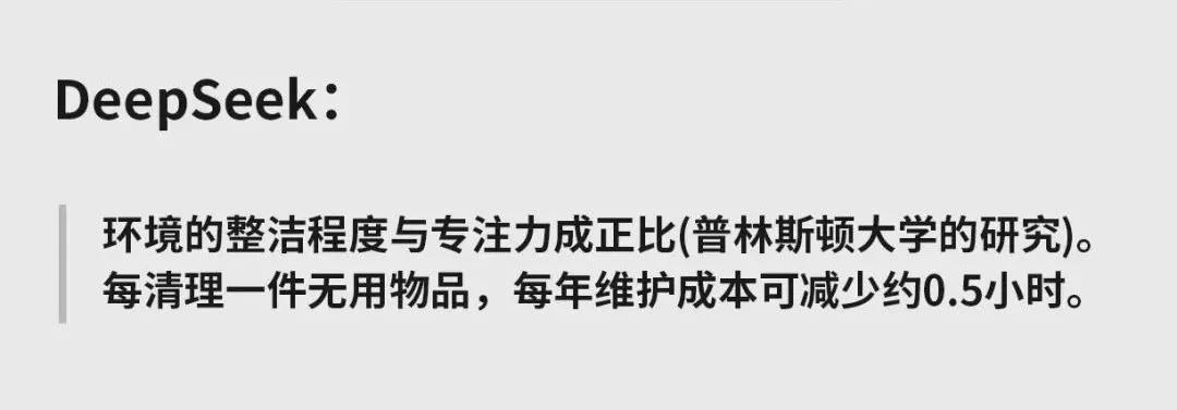 DeepSeek曾给出普林斯顿大学的研究结果:环境的整洁程度与专注力成正比。