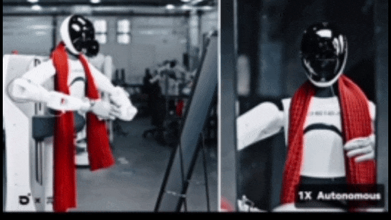 演示视频显示,让机器人完成围巾佩戴任务时,模型首先会通过观察镜子中围巾和头的相对位置,完成围巾的初始佩戴;然后根据两侧的长度比例,机器人左手准确地握住需要调整的一端,将其拉到适当的位置,右手接过左手递过来的围巾,执行“围”的螺旋缠绕动作。