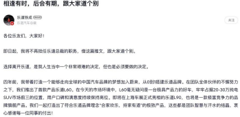 乐道汽车总裁艾铁成突发离职!
