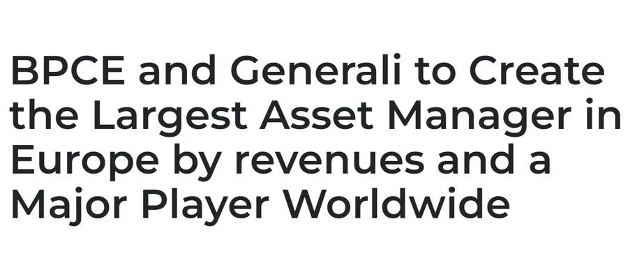 03欧洲陷入困境的资产管理公司正联起手来抵御来自美国巨头的冲击。最新的里程碑是:意大利保险公司忠利(Generali)与法国金融集团BPCE宣布同意合并旗下的资产管理业务,将缔造欧洲最大的资产管理公司。Generali和BPCE同意将各自的资产管理业务Generali Investments与Natixis Investment Managers合资成立一家新的资产管理公司,双方各自持股50%。双方拟议中的合资企业管理资产将达1.9万亿欧元,资产管理规模全球排名第九位,成为欧洲资产管理领域的领导者。
