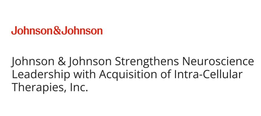 02强生(Johnson & Johnson)已同意以现金收购生物制药公司Intra-Cellular Therapies的所有流通股,总股权价值约为146亿美元。Intra-Cellular Therapies专注于开发和商业化中枢神经系统疾病治疗方法。该公司目前正在研发一种治疗重度抑郁症的药物,该药物正处于后期试验阶段。这笔交易加强了强生的神经系统疾病产品组合。强生瞄准的是Intra-Cellular旗下一款药物——Caplyta(lumateperone 卢美哌隆)。