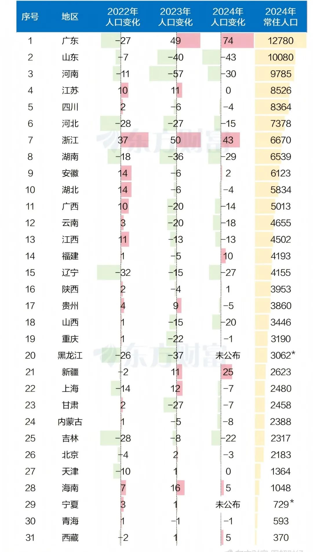 日前,各地陆续发布最新统计公报,披露2024年常住人口数据。