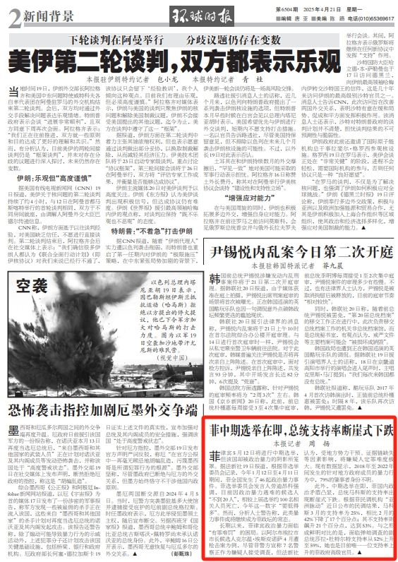此外,中期选举在即,菲国内政治矛盾凸显,总统马科斯的支持率出现断崖式下跌。根据菲民调机构“亚洲脉动”近日公布的民调结果,马科斯3月的支持率为25%,相比2月的42%下降了17个百分点;其不支持率则飙升21个百分点,达到53%。与之形成鲜明对比的是,面临弹劾调查的副总统莎拉·杜特尔特支持率从52%上升至59%,她也是目前唯一一位支持率上升的菲政府高级官员。