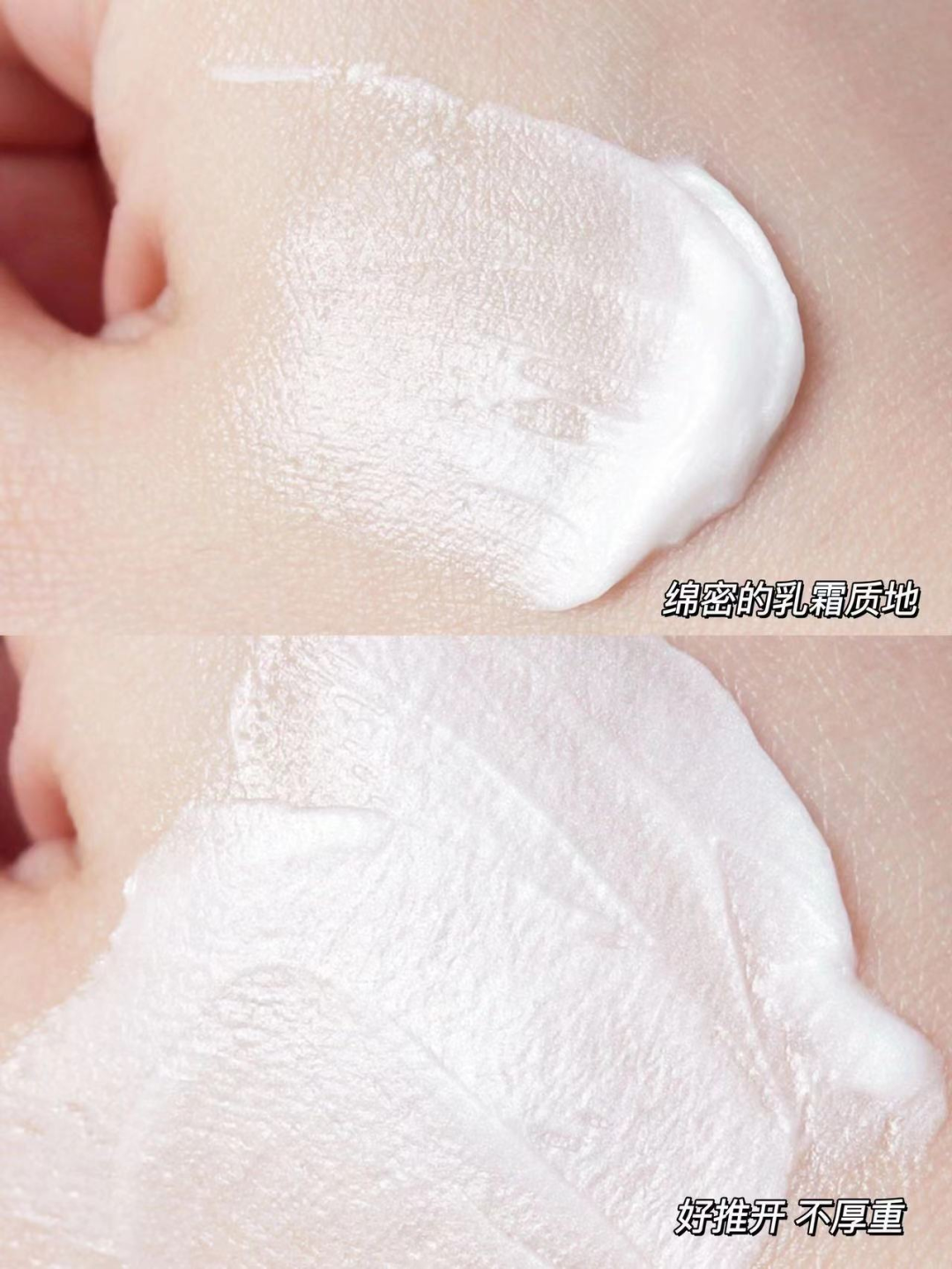 专为日间打造的面霜,质地当然做得更轻,柔软绵润,涂抹后后续上妆也不搓泥。