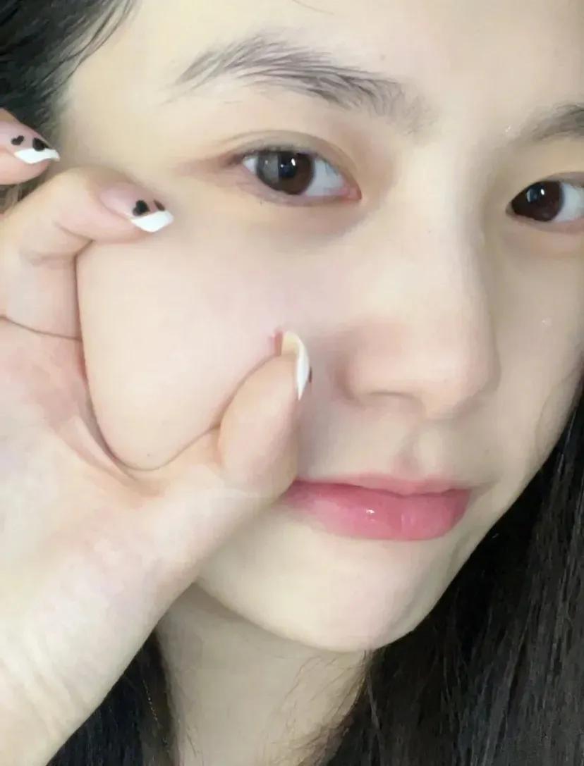 皮肤稳定不作妖,明净平滑好似白瓷,脸颊嘭嘭,颇有“青春无敌”的架势。
