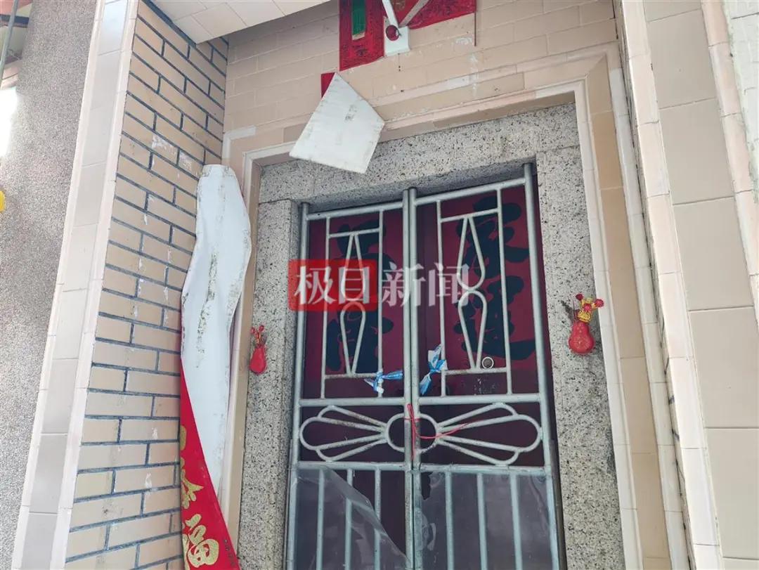 4月20日,记者来到文某某和吴某某此前的住所走访。两人居住在陆丰市甲子镇一栋居民楼二楼,一楼的大门两侧的对联因无人打理,都已经耷拉下来。铁栅门上还残留着警察调查的围蔽线痕迹,无法入内。