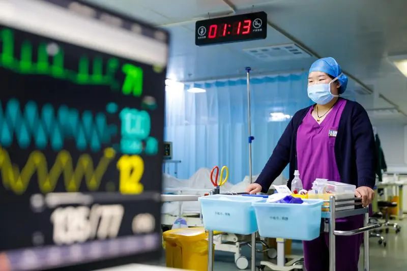 ▲1月29日凌晨,在河南省焦作市武陟县一家医院重症医学科,护士对重症患者进行夜巡护理。新华社