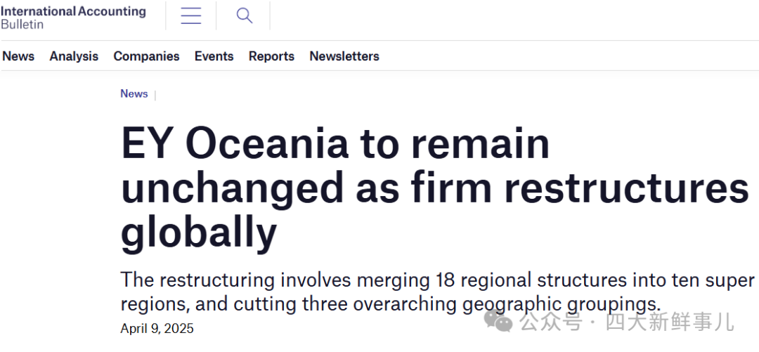 据《国际会计公报》2025年4月9日报道,安永宣布了一项全球重组计划,旨在优化其区域部门架构,但安永大洋洲业务部的领导层和架构将保持不变。