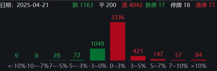 4月21日午盘,上证指数报3286.44点,涨0.3%,深成指报9852.09点,涨0.72%,创业板指报1934.05点,涨1.05%。黄金股领涨,跨境电商、数字货币、大飞机、AI应用、宇树机器人概念股活跃;银行、地产、白酒板块调整。市场逾4000股上涨。