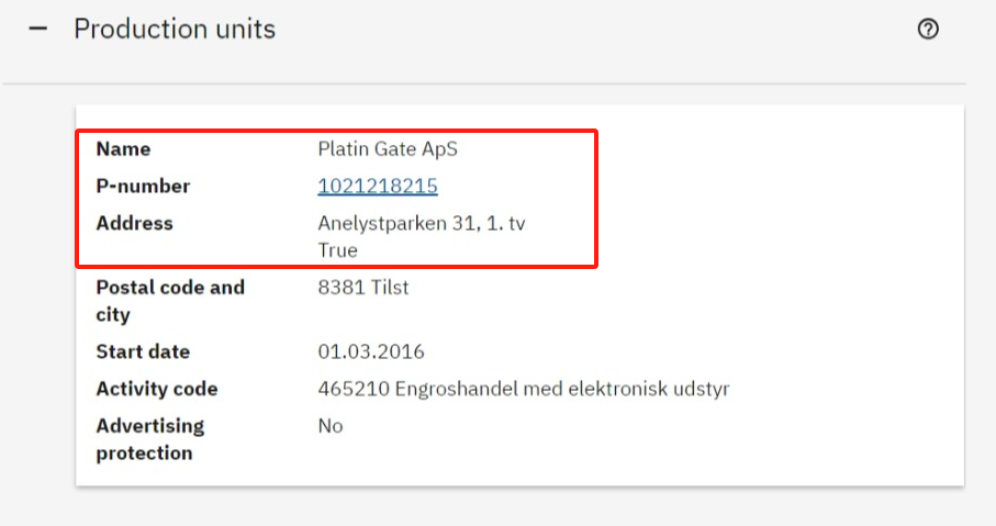 而需要指出的是,CVR公开信息显示,PG公司仅有一处地址拥有P号码,即“Anelystparken 31,1.tv True”。