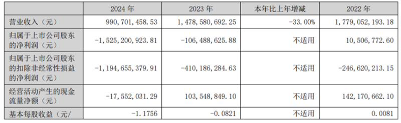 海南海药近日公布2024年年报,报告期内,实现营业收入约为9.91亿元,同比下降33%;归母净利润约为-15.25亿元,同比大幅增亏;扣非净利润为-11.95亿元,同比下降191.25%。这也意味着,海南海药走入了连续8年扣非净利润为负的困境。