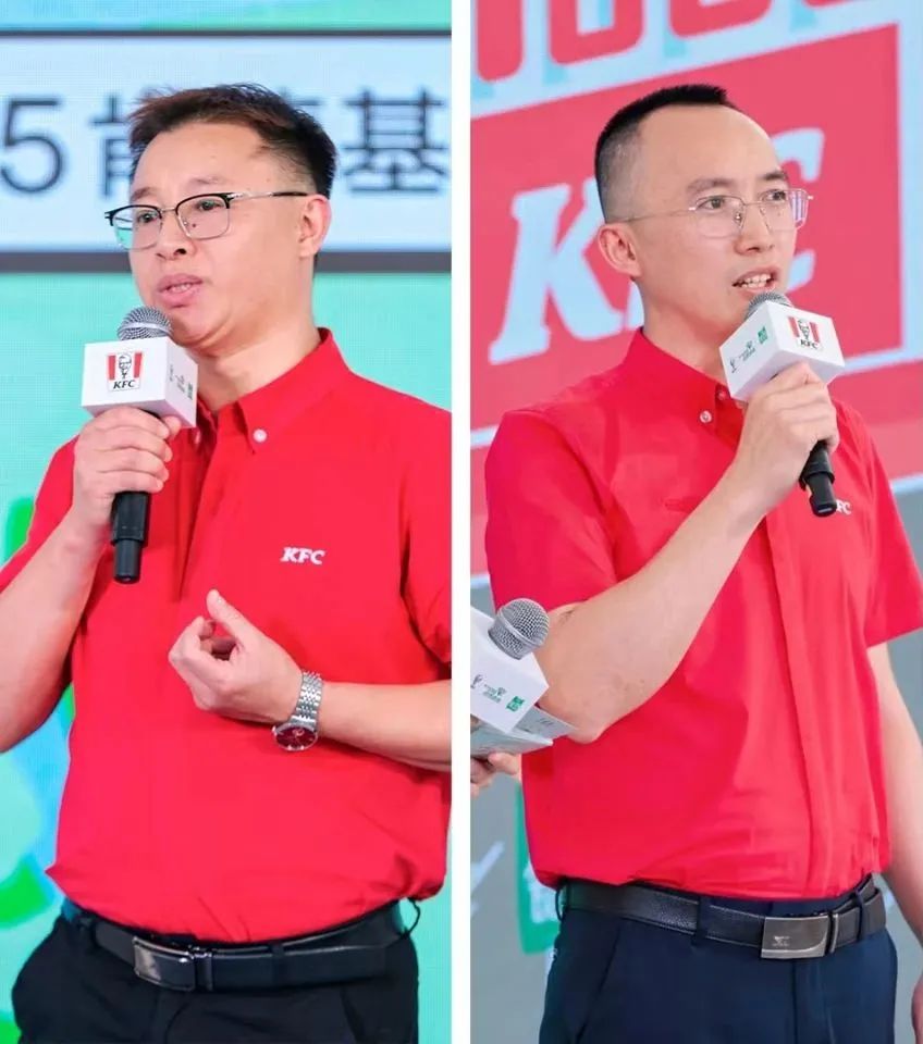 深圳福民路肯德基餐厅经理颜明华(左)、广州淘金肯德基餐厅经理黄永立(右)在发布会上做分享。
