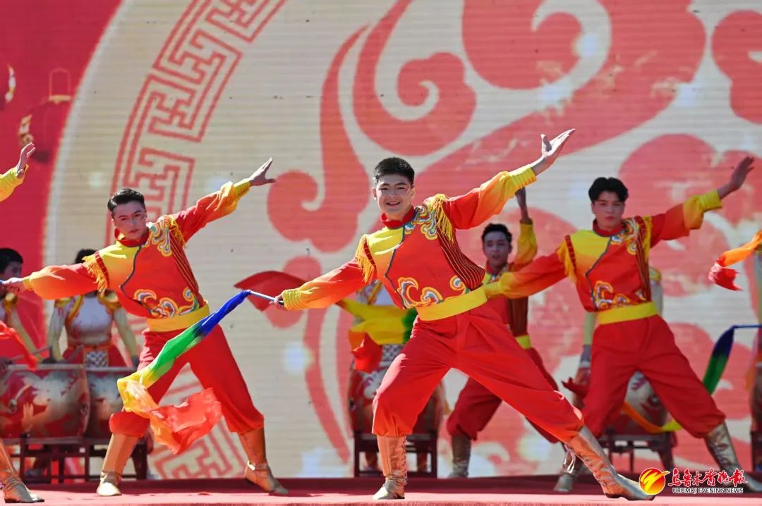 铿锵鼓点响彻云霄,绚丽彩绸翻飞舞动。随着乌鲁木齐市文化馆带来的社火表演震撼开场,一场充满新疆特色的群众文艺盛宴火热启幕。由全疆各族群众组成的100人表演队伍惊艳亮相,锣鼓队、舞龙舞狮队、高跷秧歌队穿梭于广场,以传统民俗技艺瞬间点燃现场气氛。昌吉州文化馆携手新疆文化艺术学校带来的开场舞《鼓舞欢歌》,将激昂鼓乐与灵动舞姿完美融合,铿锵节奏间尽显新疆新农村的蓬勃朝气与幸福图景。