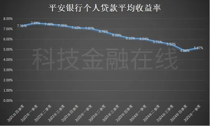 不过一季度,平安银行个人贷款平均收益率5.17%,比2024年第四季度的4.88%,提高了0.29个百分点,增幅5.94%。