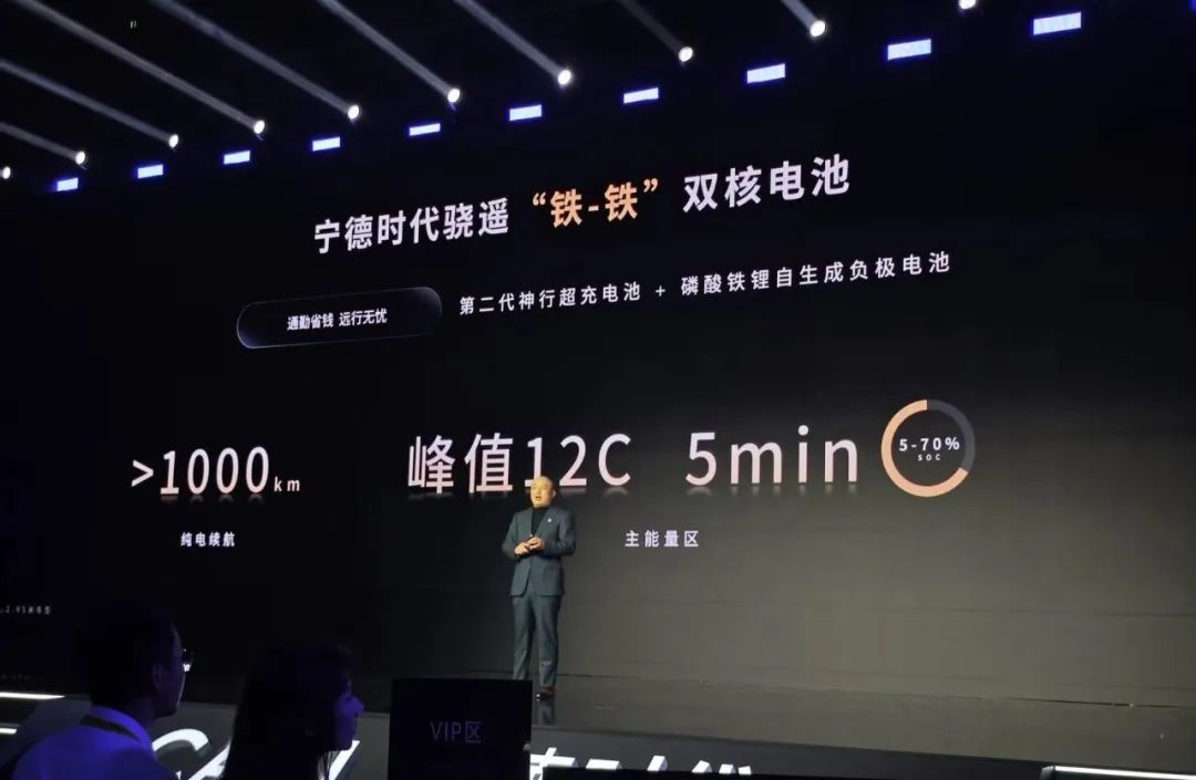 2、铁-铁双核电池(第二代神行超充电池+磷酸铁锂自生成负极电池),峰值12C充电速率,纯电续航超1000km。