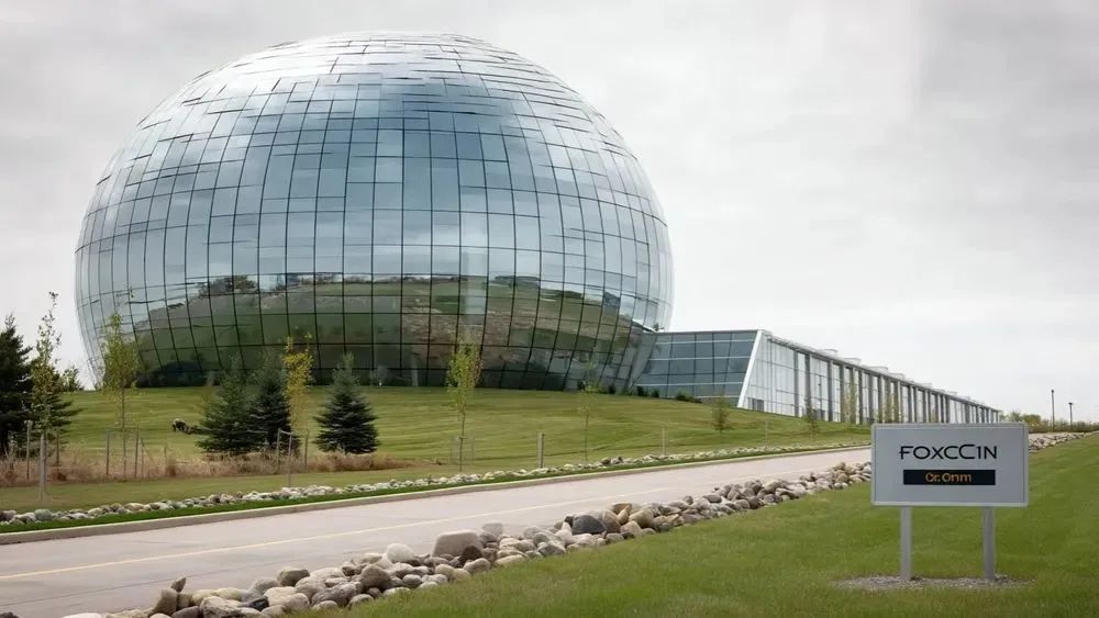 这张图里的厂房,是 2018 年,富士康承诺在美国投资 100 亿打造的“超级工厂”。