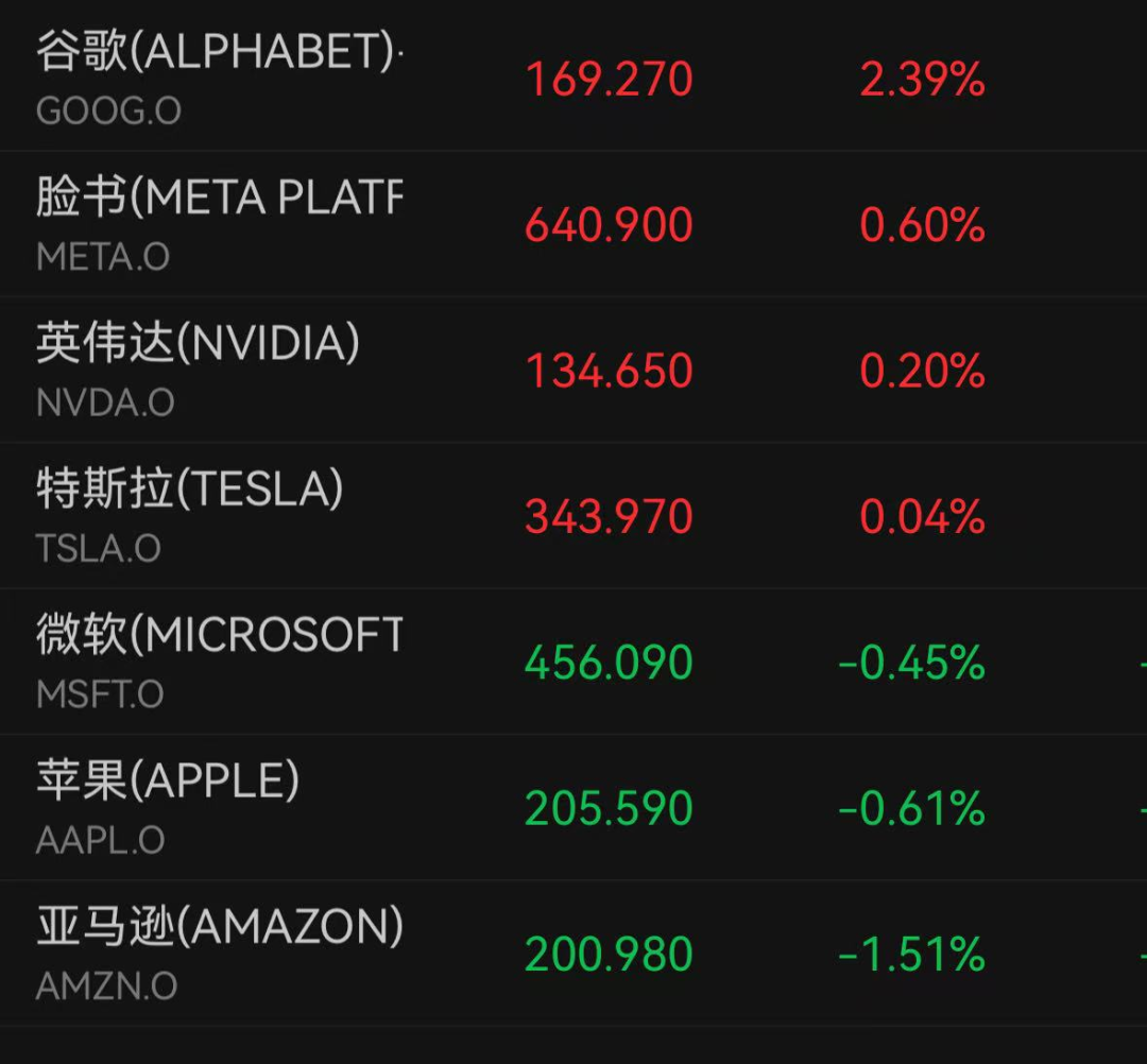 热门科技股涨跌不一,其中,谷歌涨超2%。