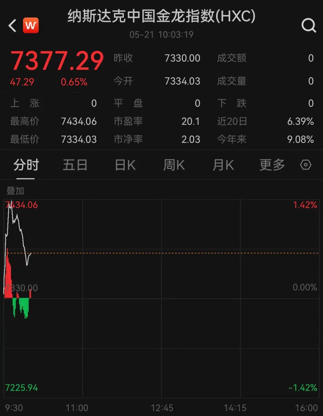 中概股方面,纳斯达克中国金龙指数开盘走高,随后涨幅有所回落。