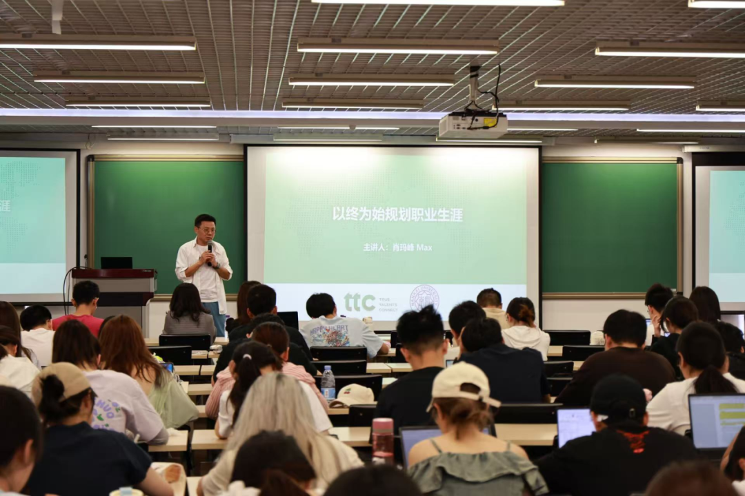 针对VUCA时代(易变性、不确定性、复杂性、模糊性)的职场焦虑,肖玛峰强调“以终为始”的规划核心——先明确职业目标,再反向推演成长路径。他结合猎头行业观察与创业经历指出,目标感是穿越行业周期的“导航仪”。例如,在AI重塑人力资源行业的背景下,主动探索“AI+招聘”“AI+组织管理”等跨界领域,既能规避传统赛道内卷,又能捕捉技术红利。他特别提醒同学们:“AI不是替代人类的威胁,而是提升生产力的杠杆。主动拥抱技术变革,才能在效率竞争中占据先机。”