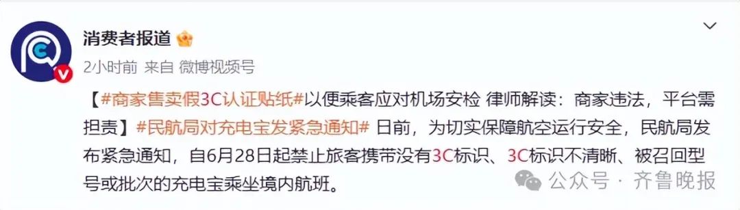 6月26日,为切实保障航空运行安全,民航局明确:无3C标识及被召回的充电宝,禁止乘坐境内航班。