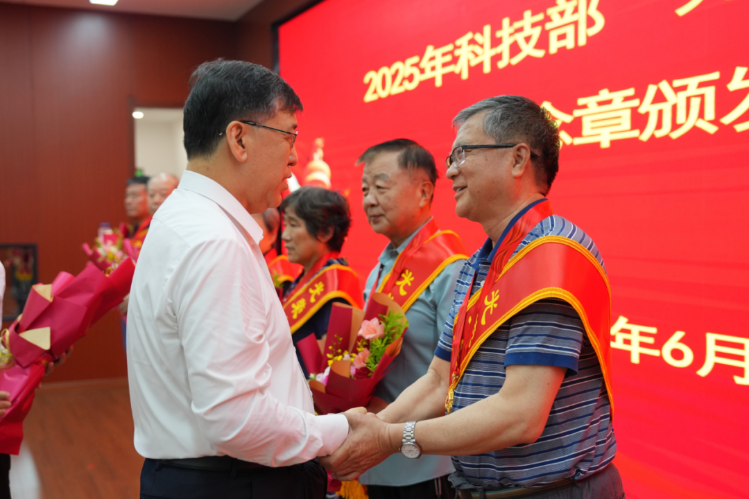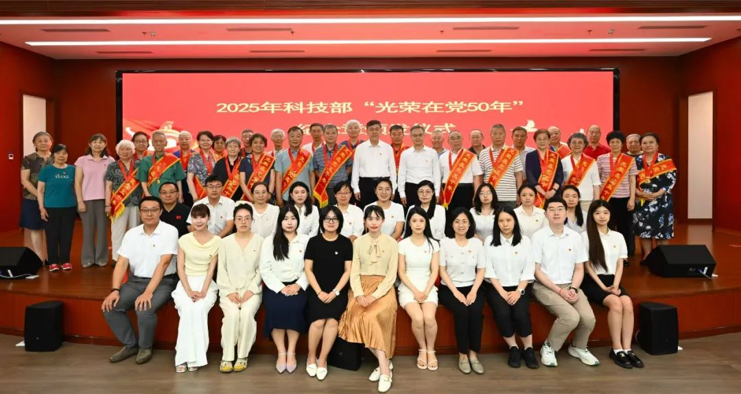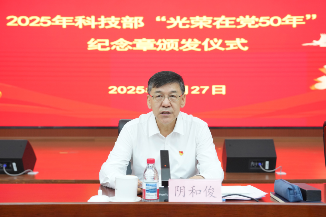 为庆祝中国共产党成立104周年,传承红色基因,弘扬党的优良传统,进一步增强党员干部的荣誉感、归属感和使命感,6月27日上午,科技部举行2025年“光荣在党50年”纪念章颁发仪式。科技部党组书记、部长阴和俊出席并讲话,部党组成员、秘书长潘晓东主持。获颁“光荣在党50年”纪念章老党员代表,各退休干部党支部书记代表,部系统有关单位负责同志,老干部工作者和青年党员干部代表参加。部系统共61名老党员获颁纪念章。