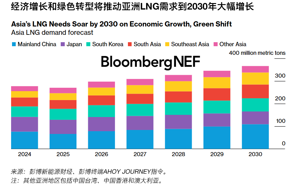 到2030年,亚洲的LNG需求预计将达到3.66亿吨,较2024年增加8,900万吨。中国大陆、东南亚和南亚预计将引领这一增长,而日本将是同期唯一需求下降的市场。