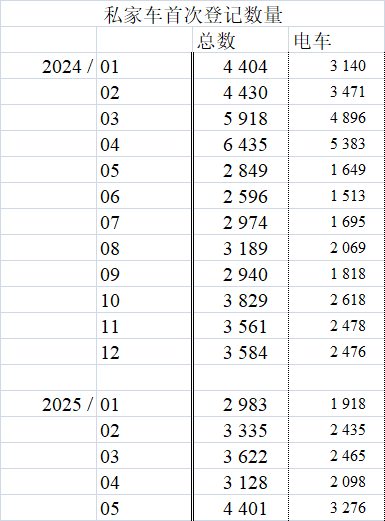 从销量看,补贴退坡已产生影响。香港运输署数据显示,2024年4月补贴调整后,新能源车销售明显回落——当年1~4月每月销量均超4000辆(4月达6435辆),5~12月则在3000辆左右波动。2025年1~5月,私家车新登记量17469辆,同比下降27.32%;其中新能源汽车12192辆,同比下降34.23%。不过5月份数据显示,私家车总数回到4000辆以上,电动车也回到3000辆以上。随着政策2026年到期,新能源车销售是否将进一步承压需要观察。