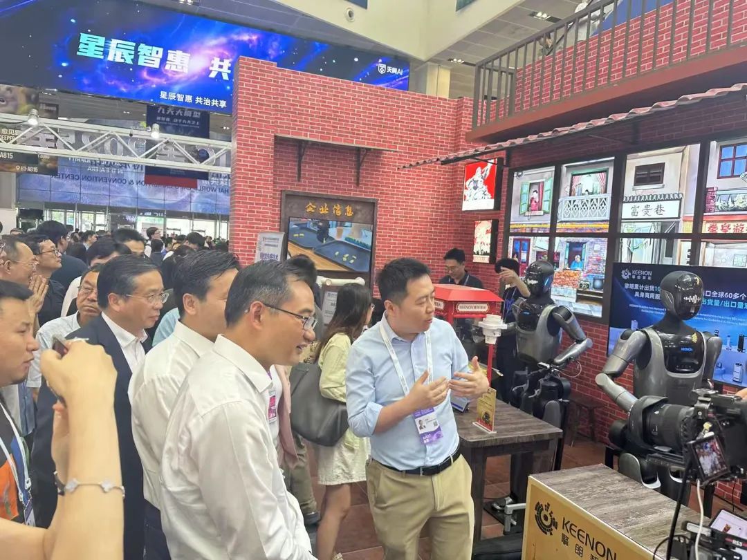 李通和他的擎朗智能亮相世界人工智能大会中央展区C位。