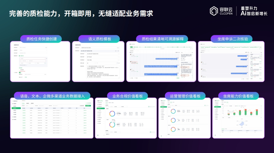 容联云的产品落地路径,始终围绕“解决真问题、创造真价值”展开,在智能质检、高并发客服、数据价值激活等场景中,展现了AI新质生产力的实践力量。