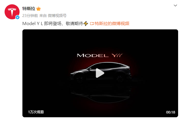 8月18日晚间,特斯拉官方微博宣布,Model Y L车型即将登场。