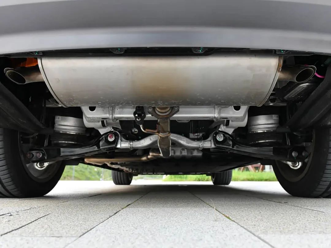 车尾部分,新车配备车顶扰流板,并内嵌高位制动灯组,后窗雨刷器采用隐藏式的布局。新车尾灯组为贯穿式设计,两侧尾灯主体使用了三条幅纵向布局,结合贯穿式的单条幅辅助光源,在点亮后让新车具有较高的辨识度。新车后包围呈现上提趋势,宽厚的设计与后备厢内凹式的牌照框区域结合,让车尾具有不错的立体感。