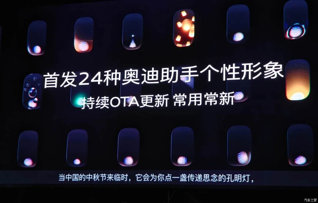 配置层面,该车将配备车内氛围灯(由RGB LED灯珠+光导方案将灯带隐藏起来,提升高级感)、EC自主变色透光天幕(5档明暗调节,有效过滤99.99%紫外线)、BOSE悦动音响系统及主驾头枕音响(全车18枚扬声器)以及全场景陪伴奥迪助手(基于Kanzi 3D引擎渲染驱动,结合OLED技术的曲面屏造型,提升视觉感受)等。