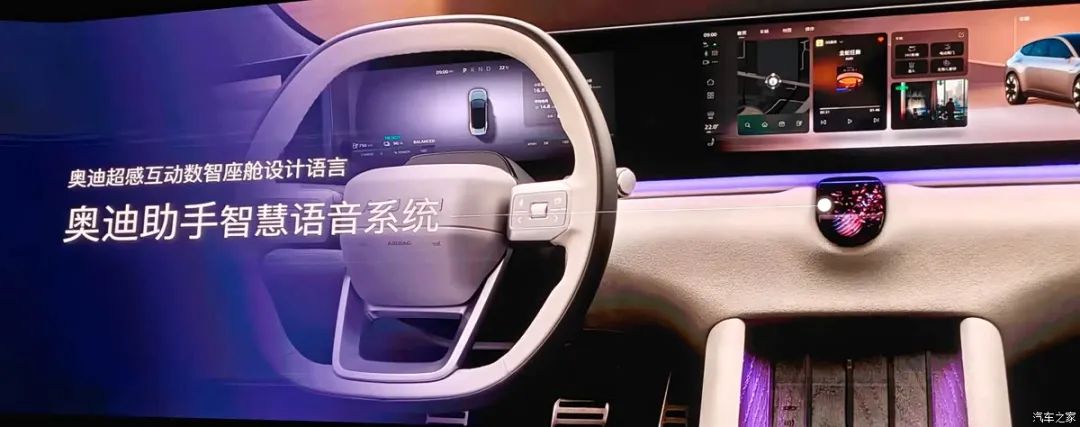 内饰方面,该车整体设计简单但不失高级感。由全液晶仪表+中控屏+副驾娱乐屏组成的贯穿式“带鱼”屏,让其有着不错的科技感。同时,屏幕两侧的“耳片”则是电子外后视镜的显示屏。值得一提的是,该车搭载AUDI OS全新奥迪操作系统,使用高通骁龙8295座舱芯片,车内奥迪助手基于火山引擎大语言模型“豆包”深度定制,具备强大的语义理解、多轮对话及车控交互能力。