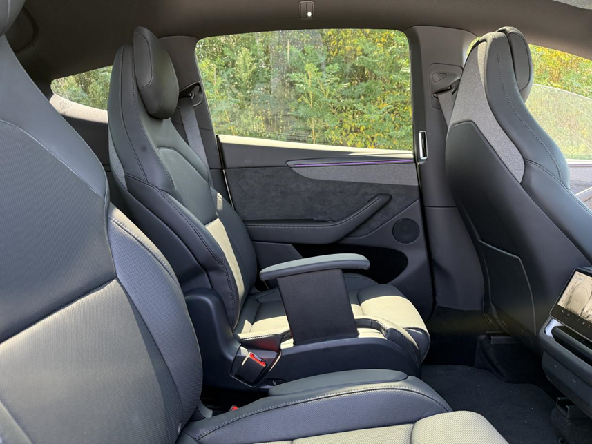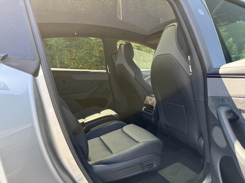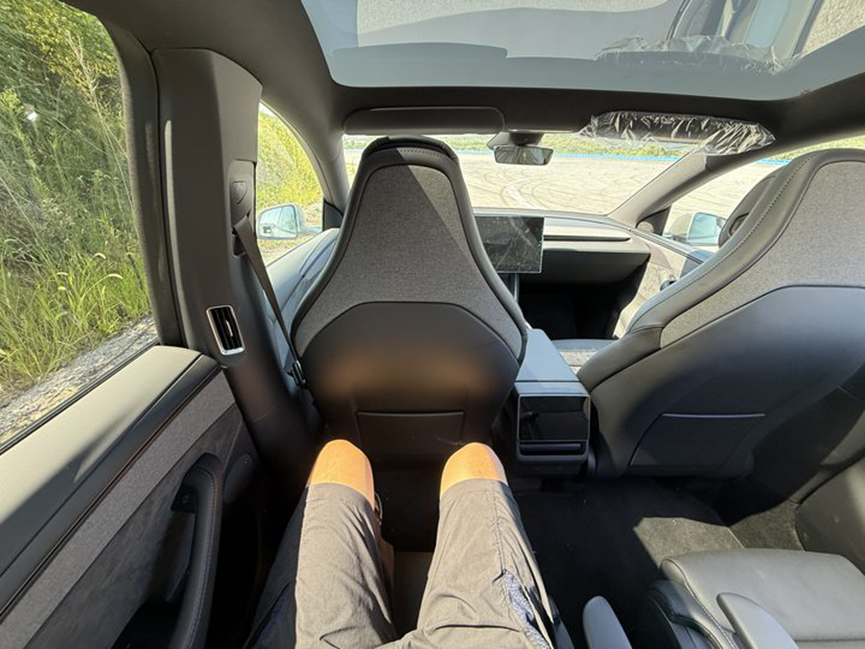 但如果你身高170甚至以下,其实就不用担心空间的问题了。很多人都会担心三排的头部空间,其实Model Y L在保留了溜背造型的情况下,把车顶结构重新优化了一遍。当然,如果你身高185以上,我建议要么自己开车要么坐在二排,如果你实在要坐三排,去买台造型方正的全尺寸SUV吧。
