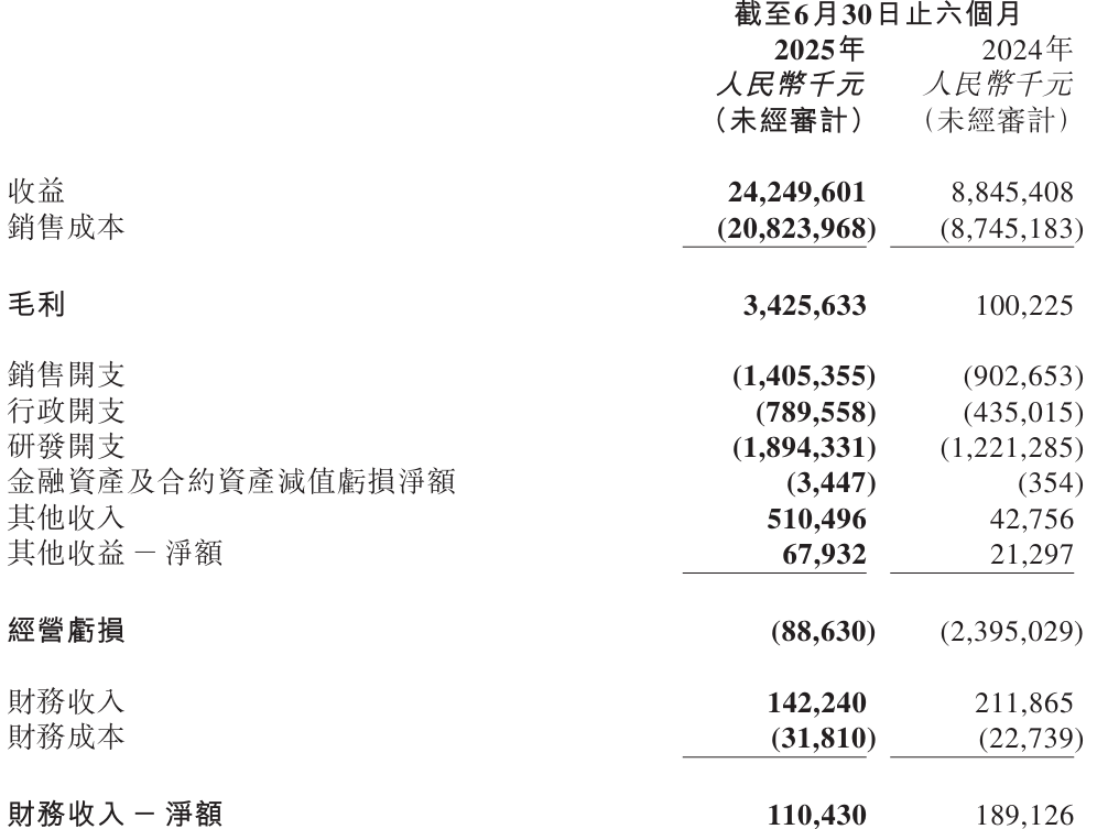 销量的狂欢直接推高了零跑汽车的业绩:上半年营收242.5亿元,同比增174%。