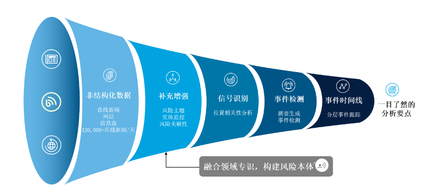 有别于传统人工检索模式,风险洞察中心RIC依托自研AI平台,接入逾20万家新闻网站及全球非营利组织GDELT Project提供的风险事件数据库,实现日均处理250万条多语种新闻数据,精准筛选12万条中、英、日、西等7种语言的潜在风险资讯。平台通过风险本体(Risk Ontology)与AI模型对非结构化数据进行智能解析,完成风险信号识别、事件摘要生成及动态追踪,系统性提升风险预警、合规审查与商业洞察的效能与精准度。