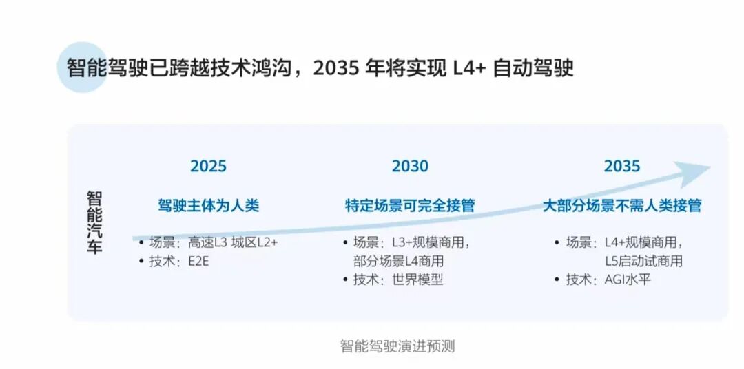 趋势六:随着世界模型等关键技术突破,全新的L4+自动驾驶汽车将会走入人们的生活,成为“移动第三空间”。