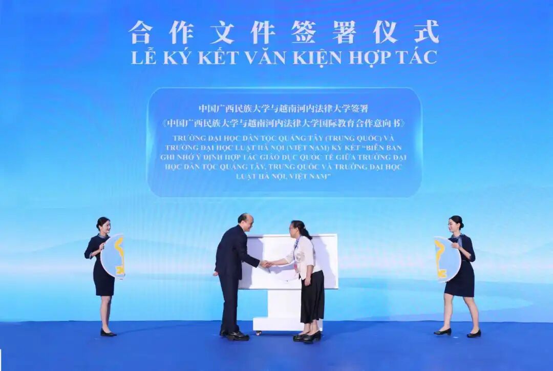 今年6月,中越司法行政部门首次边境会晤在广西南宁举行。会晤期间,广西民族大学还与河内法律大学签署合作协议,双方将在师生交流交换、联合研究与教学活动、短期研修项目等领域展开合作,共同探索中越两国法学教育合作新模式。