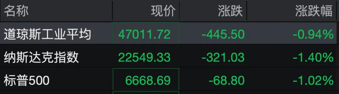 11月14日,美股三大股指大幅低开,道指跌0.94%,纳指跌1.40%,标普500指数跌1.02%。