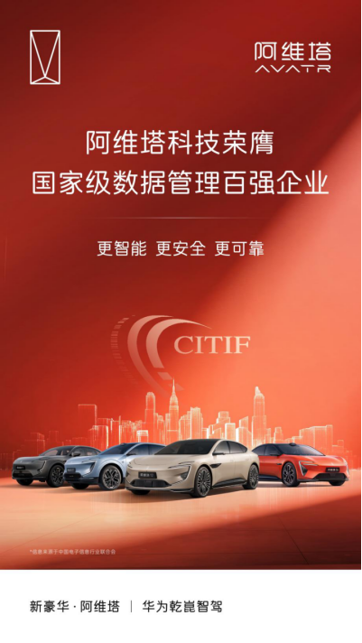 本次“数据管理百强企业”名录由中国电子信息行业联合会组织评选。该联合会由国务院批准设立、工业和信息化部主管,是电子信息领域的最高层级机构。作为新能源汽车制造领域的新实力企业,阿维塔从上万家参评企业中脱颖而出,展现出了其在数据治理与应用方面的领先水平。