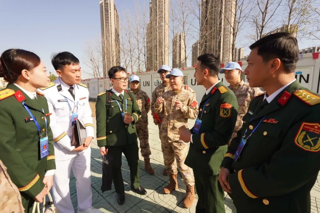 在维和综合训练营地,各国代表与正在参加联合国维和培训的干部学员亲切交流,观看我军联合国维和纪录片,对我国参加联合国维和行动的专业素养和人道主义精神给予高度评价。