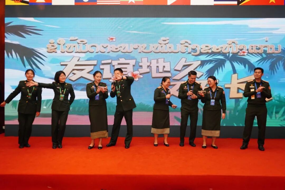 当晚,欢迎招待会在温馨热烈的氛围中举行。中外军官共进晚餐、互赠纪念品,参与文艺表演与互动游戏。载歌载舞间笑语飞扬,招待会氛围推向高潮,中国-东盟传统友谊在相聚互动中愈发深厚,携手谱出一曲崭新华章。