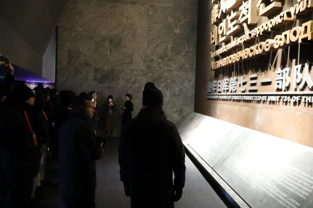 外军学员一边听讲解员介绍,一边凝视着展厅陈列的各类罪证。那些冰冷的数字、真实的证词、震撼的影像,都无不在诉说着那段黑暗的历史。