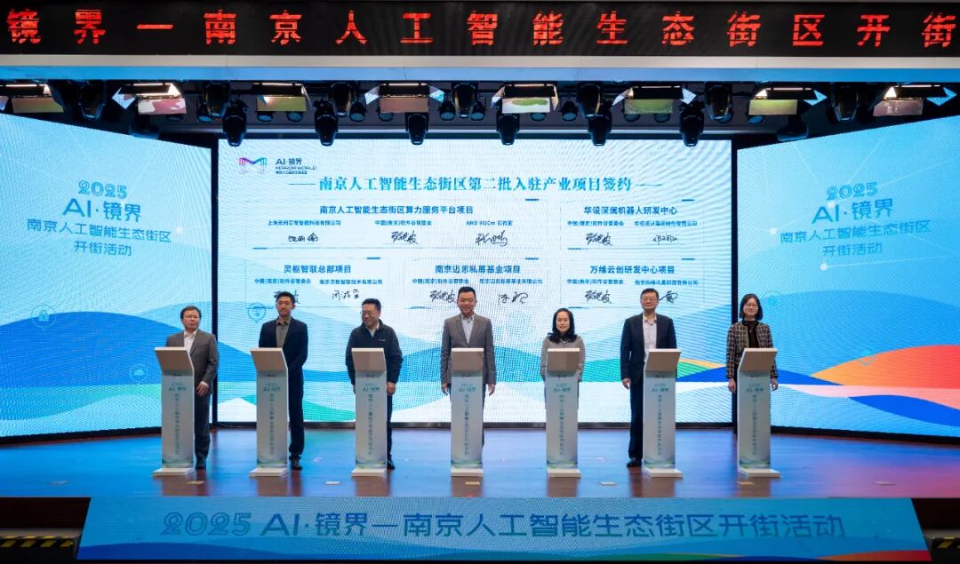 一句人机交互的对话可实现美团快速点单、网约出行确认;轻启按键,华夏机器人迅捷的在热力街舞和沉稳太极间自由切换……23日上午,南京首个人工智能生态街区“AI·镜界”在雨花台区中国(南京)软件谷亮出首秀。活动现场,软件谷人工智能应用产才协同创新中心、南A中心产业协同发展基地同步启用。南京大学软件学院AI4SE创新中心、东南大学人工智能研究院(软件谷分院)、东南大学—中国(南京)软件谷智能机器人双高协同创新中心及一批产业项目集中签约。华为人工智能产业创新中心、中兴通讯(南京)智算创新中心揭牌入驻,“质能·工坊”OPC社区正式运营。