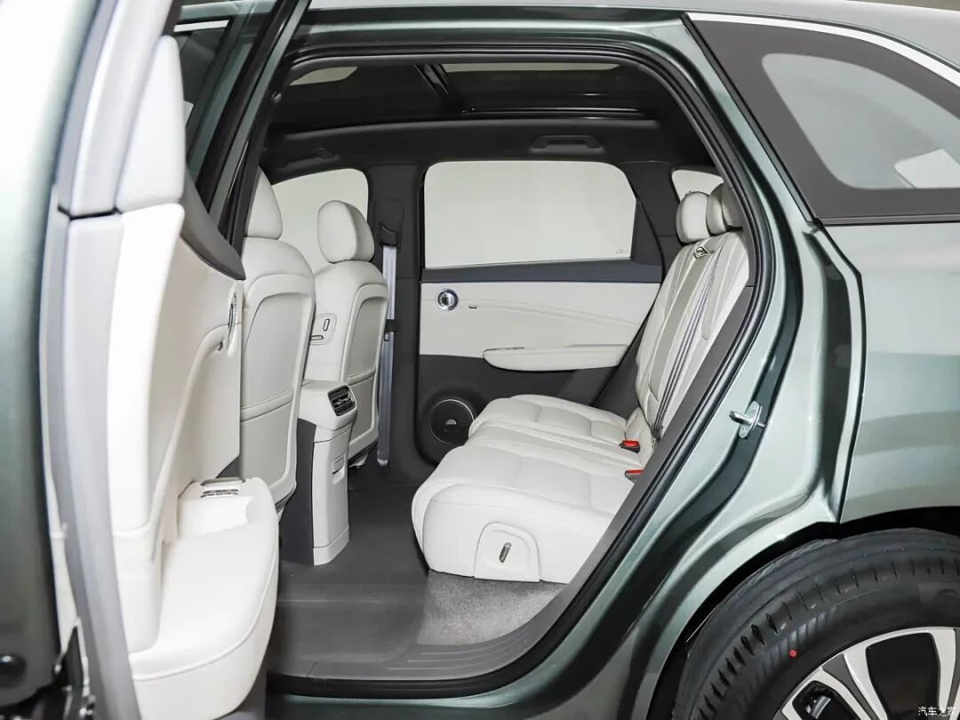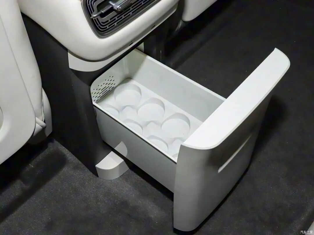 内饰方面,新车采用了内嵌式的小尺寸矩形全液晶仪表盘,并搭配双色三辐式多功能方向盘,中控台上配备了多媒体屏与副驾屏的双联屏设计,屏幕尺寸和分辨率达到了15.6英寸2.5K,内置高通骁龙8295P芯片。同时,车辆第二排配备大容量冰箱、座椅电动调节,高配车型支持二排座椅通风加热功能。此外,新车还将配备12/16扬声器的单拿音响系统。
