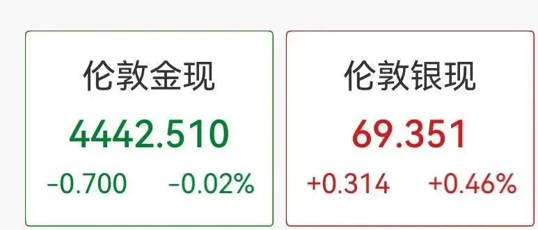 商品方面,伦敦金现短线跳水,由涨转跌,此前涨超1.2%。伦敦银现一度突破70美元关口创新高,随后涨幅回落。