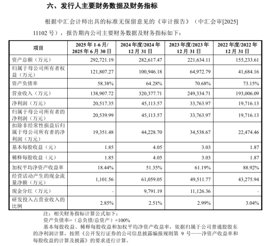 业绩方面,2022年—2024年及2026上半年,惠康科技实现营收分别为19.3亿元、24.93亿元、32.04亿元、13.89亿元;归母净利润分别为1.97亿元、3.38亿元、4.51亿元、2.05亿元。